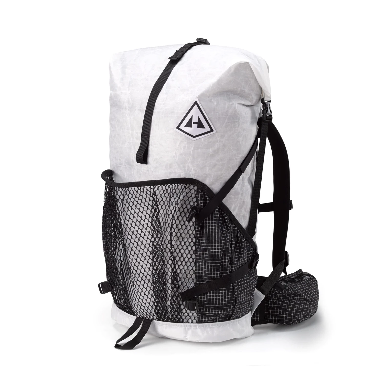 The 2400 Junction backpack from Hyperlite Mountain Gear is a premier pack designed to be ideal for ultralight weekend backpacking trips or section hikes where frequent resupply points are available. This pack is best suited for on-trail and light off-trail adventures. The main bag fabric is an ultra lightweight Dyneema® composite that is virtually waterproof in most conditions with it’s roll-top closure style design and seam-taped seams. The bottom section of the pack uses a more durable lightweight Dyneema® composite fabric. 5 external pockets provide quick access to all types of gear. The rear external mesh pocket is great for drying out wet clothing or gear as you go.