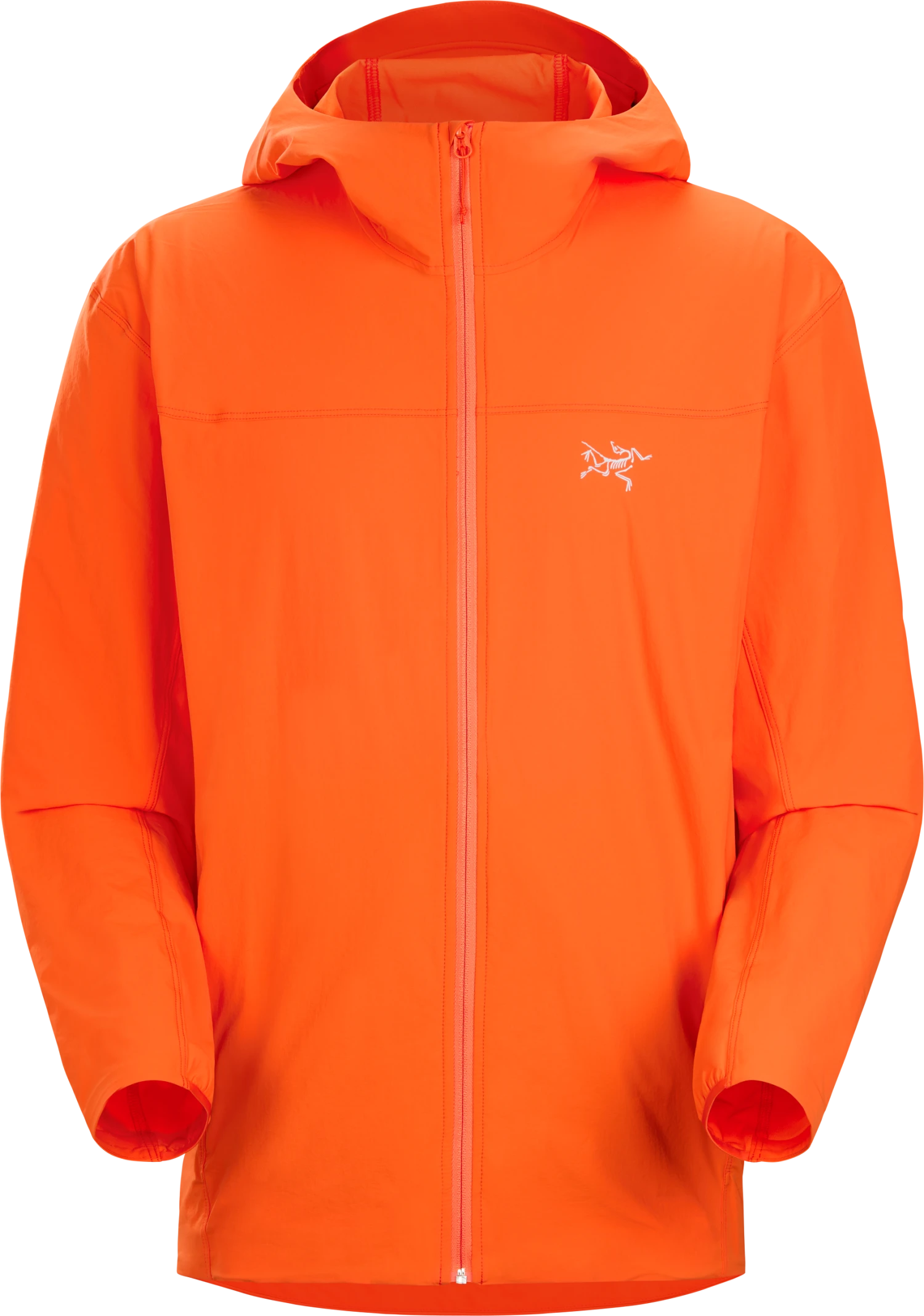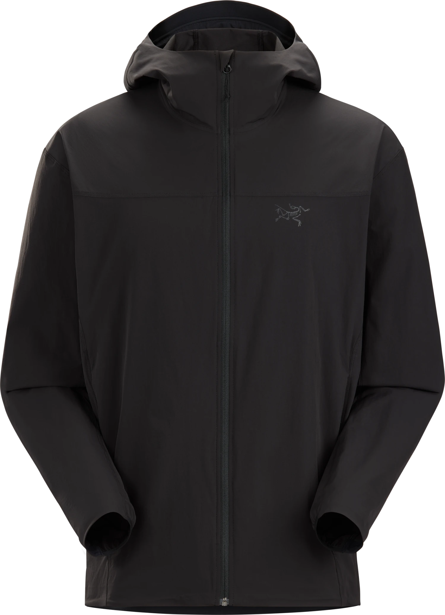 This new superlight softshell jacket is the lightest weight full-zip hooded jacket in the true softshell category from Arc’teryx. An amazingly versatile piece that is the perfect weight layer to put on when you need just a little more warmth and a lightweight short-sleeve or long-sleeve shirt just isn’t quite enough warmth. Wear this as a windshirt, mid-layer, or outer layer for extra abrasion protection while alpine rock climbing. Put this over a superlight puffy jacket for extra snag and abrasion resistance during cold weather activities when extra protection is needed but wearing a bulky or boardy full-on waterproof hardshell would be undesirable. This jacket could go with you on virtually any mountain outing, any where, and any time of the year. The fully adjustable lightweight hood is perfect to pull off and on to control your temperature as needed, and also works well over a thin skull cap or lightweight visored performance ball cap in colder or more blustery conditions. Wind resistant and highly breathable, this jacket is a great weight for most of your hiking, backpacking, ski touring, and light and fast mountaineering outings. It’s also an extremely comfortable item for wearing around town. The most breathable full-zip softshell jacket available at our Seattle Retail Store.