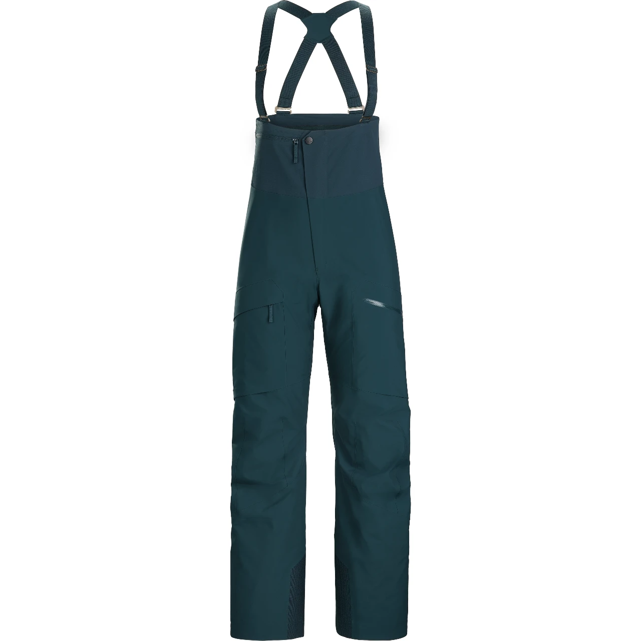 These are now the premier backcountry ski/snowboard and ski mountaineering bibs from Arc’teryx. The height and construction of these bibs gives you superior protection from snow intrusion over pants without compromising breathability. Constructed primarily with softer and quieter 3-layer GORE-TEX® Shell fabric with a C-KNITâ„¢ backer, but with a even more breathable, stretchy, softshell upper bib section. Other features include things like thigh vents, 3 pockets, suspenders, Cordura® touring cuffs, Keprotecâ„¢ instep guards, and a RECCO® reflector.