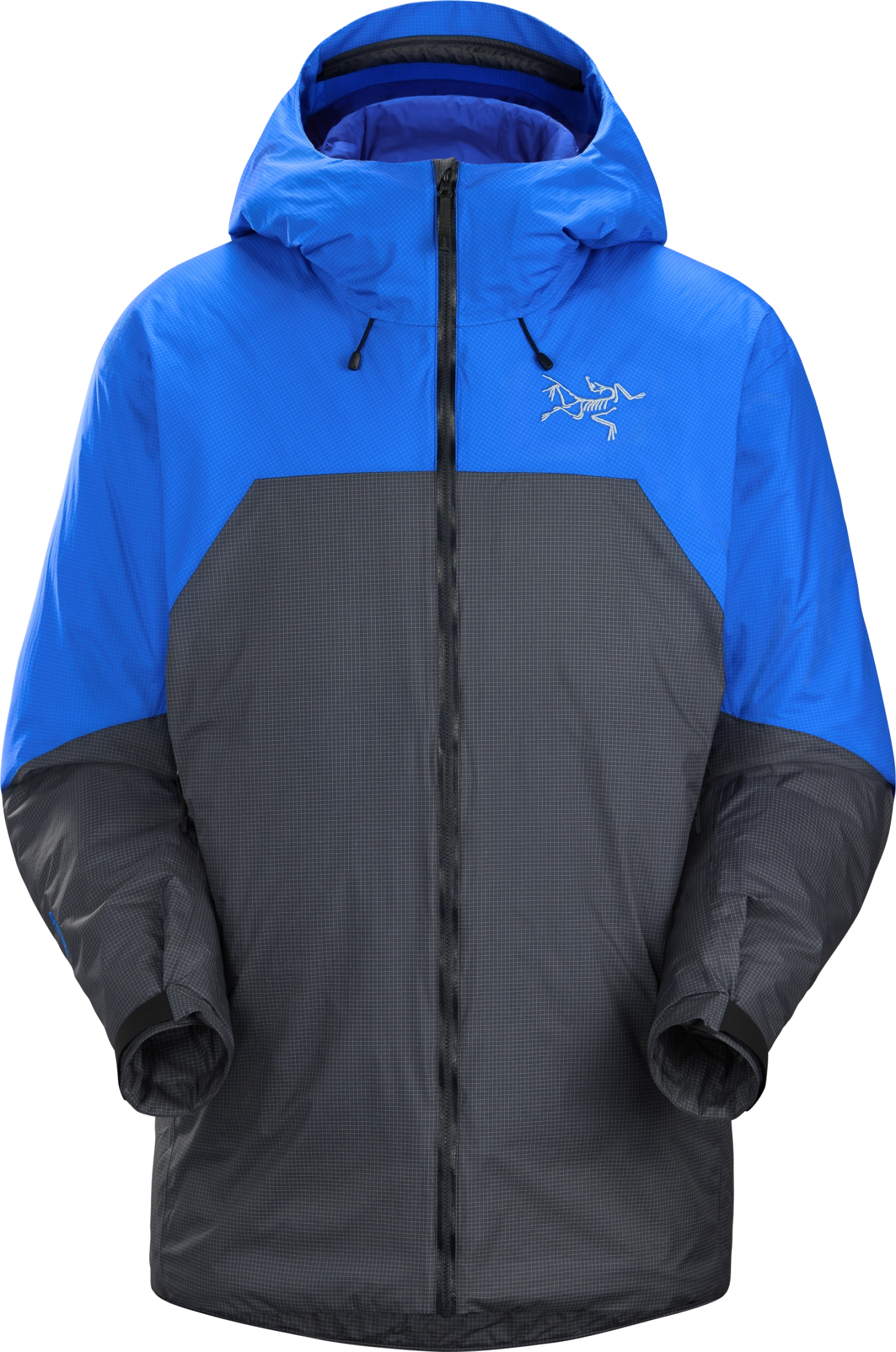 The Rush Insulated Jacket from Arc’teryx is a premier backcountry ski mountaineering summit parka made with lightweight but highly durable GORE-TEX INFINIUM with Hadronâ„¢ face fabric and 100g Coreloftâ„¢ synthetic insulation and is windpoof and extremely water repellent while remaining highly breathable. The perfect piece to stuff into the very top of your pack for immediate quick access on the summit, during rest periods, and while transitioning or descending in cold winter conditions. Other features include an insulated helmet compatible StormHoodâ„¢, two zippered hand pockets, two internal dump pockets, and an adjustable hem drawcord.