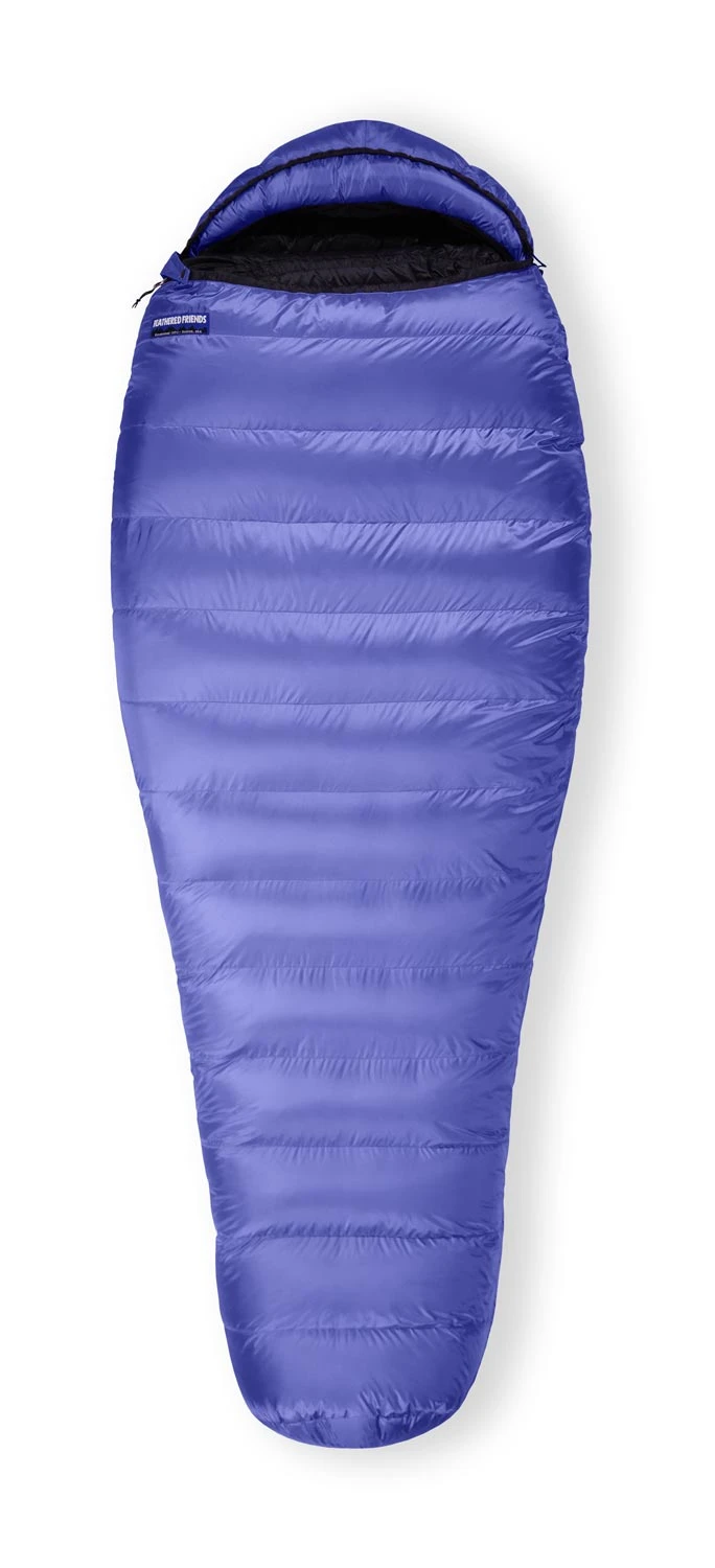Feathered Friends Women’s mummy sleeping bags are built a bit more trim around the shoulders, but more space in the waist and hips.
