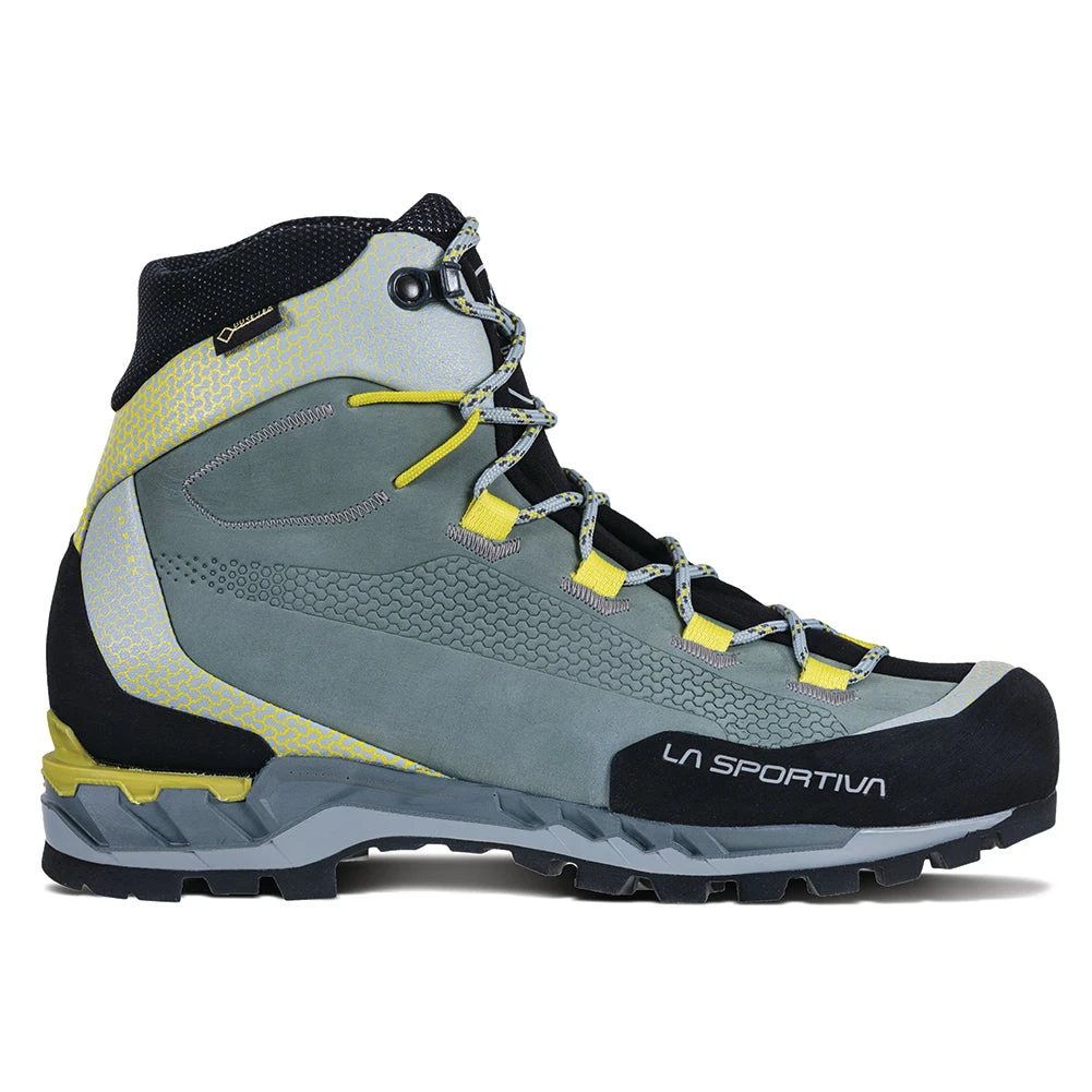 Lightweight easy grade women’s specific fit mountaineering and backpacking boots. Perfect for most mid-summer lower Cascade and Olympic Mountain mountaineering, scrambling, backpacking, and day hiking routes. Nubuck leather upper with a waterpoof/breathable Goretex® Performance Comfort Lining and toe/heel rands. To-the-toe lacing for a precise fit. Compatible with most semi-automatic and strap-on crampons. Northwest backcountry alpine versatility at its best. This leather version of the Trango Tech is more durable and slightly stiffer than it’s synthetic counterpart, which makes it more versatile and longer-lasting for the average person. This Trango Tech Leather also has a significantly wider toe box area than La Sportiva’s other Trango series models, which give these boots a much broader fit range for more different foot shapes. One of the lightest weight and best-priced mountaineering boots available. Women’s specific Trango last and fit.