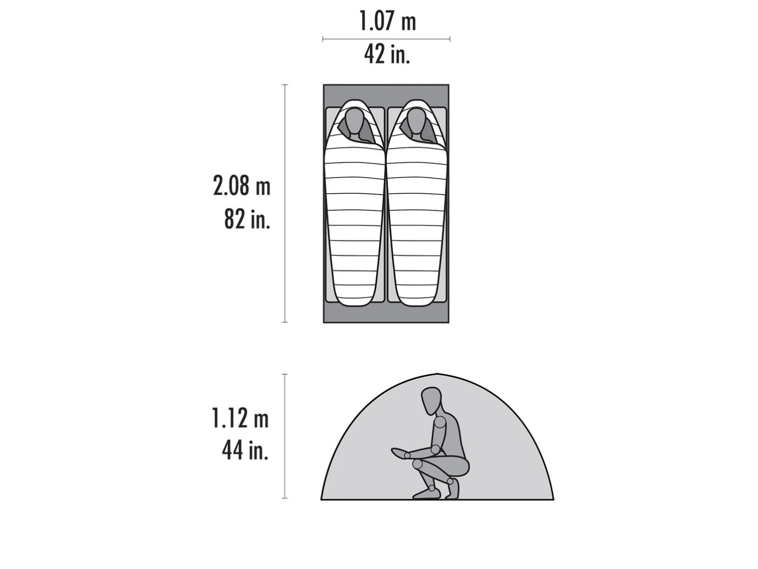 The Advance Pro 2 is MSR’s premier tent for lightweight alpinism, and is an ultralight 2-person 4-season single-wall tent. This compact tent utilizes just 2 poles with a sleeve for one and clips for the other which allows for quick and easy set-up in storms and tight spaces. The upper tent body is made with a 2-layer waterproof-breathable 20d ripstop nylon fabric. The floor is a thicker waterproof 30D ripstop nylon with a 3000 mm Xtreme Shieldâ„¢ polyurethane coating and durable water repellent finish. The is a single wall style tent, and so the tent body is also the rainfly and there is no separate rainfly to drape over the top. The amount of space in the tent is made to be tight for 2 people and roomy for one person with gear. The polyurethane applied tent fabric is best suited for cold and dry high altitude environments. Other features include a single zippered door on one end that zips down towards the floor of the tent, 2 mesh-backed peak vents on the sides, ultralight Easton® Sycloneâ„¢ composite poles, and numerous low and high-level guy-out points at the corners, sides, and top of the tent for high wind security and stability. This is a highly specialized lightweight mountaineering tent.