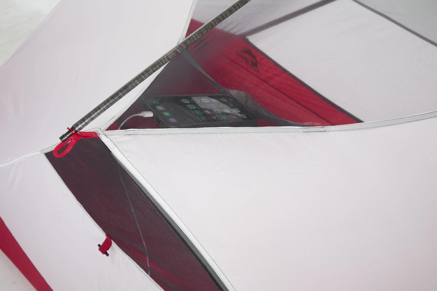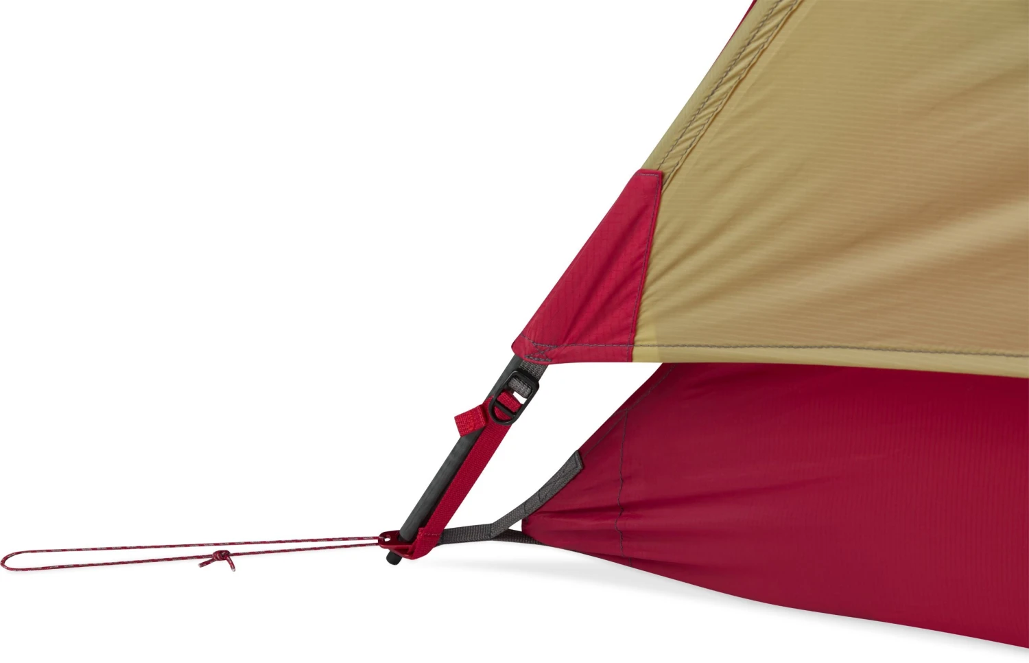 The MSR Hubba Hubba 2 is their best-selling 3-season lightweight backpacking tent, and the design has stood the test of time for many years. This symmetrical tent has 2 side doors and 2 vestibules for separate, convenient, and protected access for each person. The tent is freestanding and utilizes a traditional double-wall tent design with a separate breathable inner tent body and waterproof rainfly. The Easton® Syclone™ tent poles are made with an advanced aerospace composite material and utilize a hub-style system for set up that helps to keep the tent lighter and more compact in your backpack. A short pole across the top helps to provide more headroom and stability while adding protection from the elements for the doors. A hybrid mesh and solid fabric tent body provides a balance between airflow, privacy, and weather protection. Other features include pockets with cable ports for electronic devices, an overhead gear loft, kickstand vents on the rainfly vestibules for extra airflow, as well as reinforced patches, extra stitching at guy points, and locking anodized stake loop grommets for extra strength.