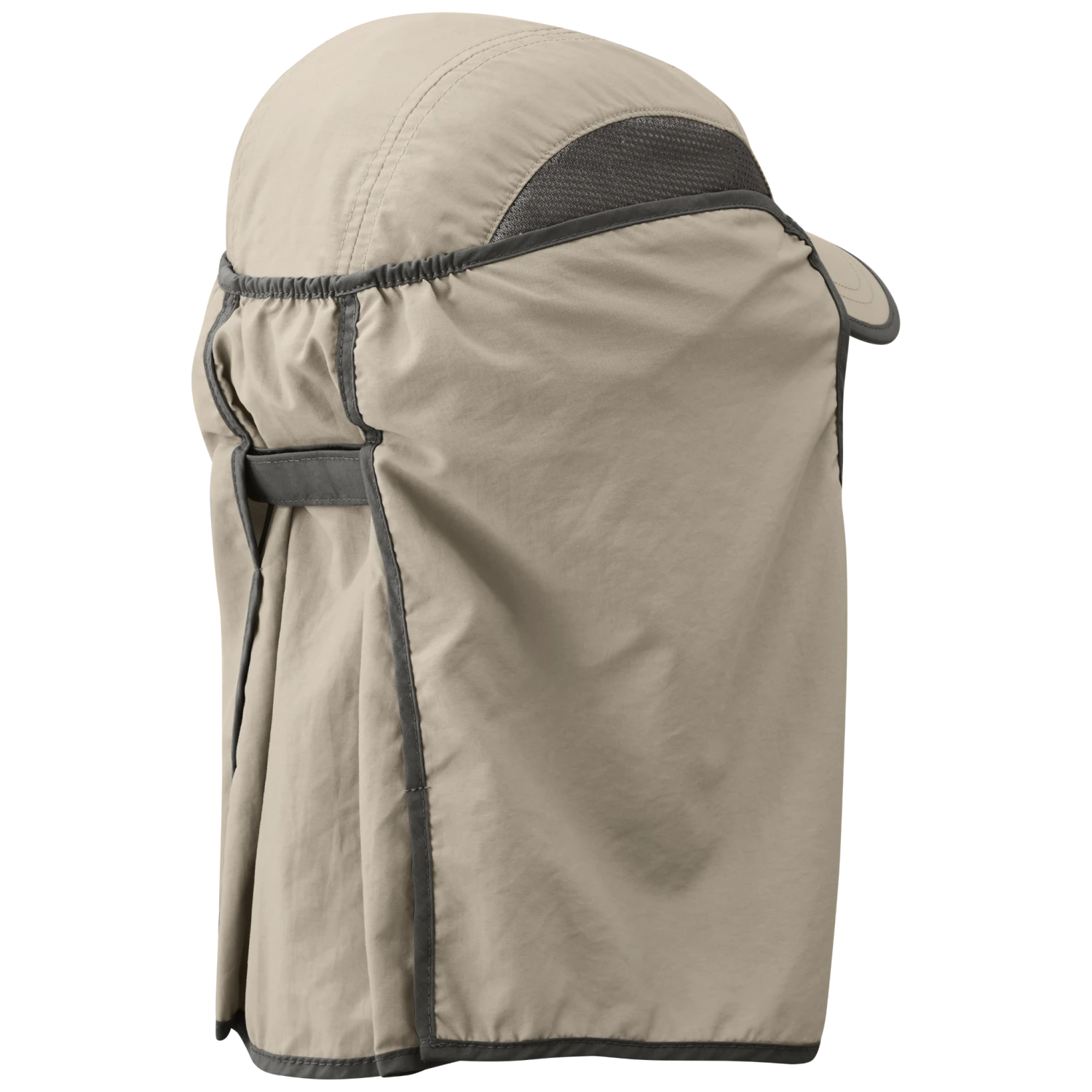 One of our best selling snow and glacier travel hats. Also great for hiking, ski touring, mountaineering, fishing, and boating. Extremely versatile for hot sunny conditions. Removable UPF 50+ sun cape easily snaps off and on for extra sun protection for your ears and neck when needed. Dark fabric under the brim reduces glare and improves vision in bright sun. Mesh side panels increase breathability and comfort. A removable chin cord helps secure the sun cape and hat in windy conditions, while a hook/loop back also provides adjustability. Lightweight and very packable.