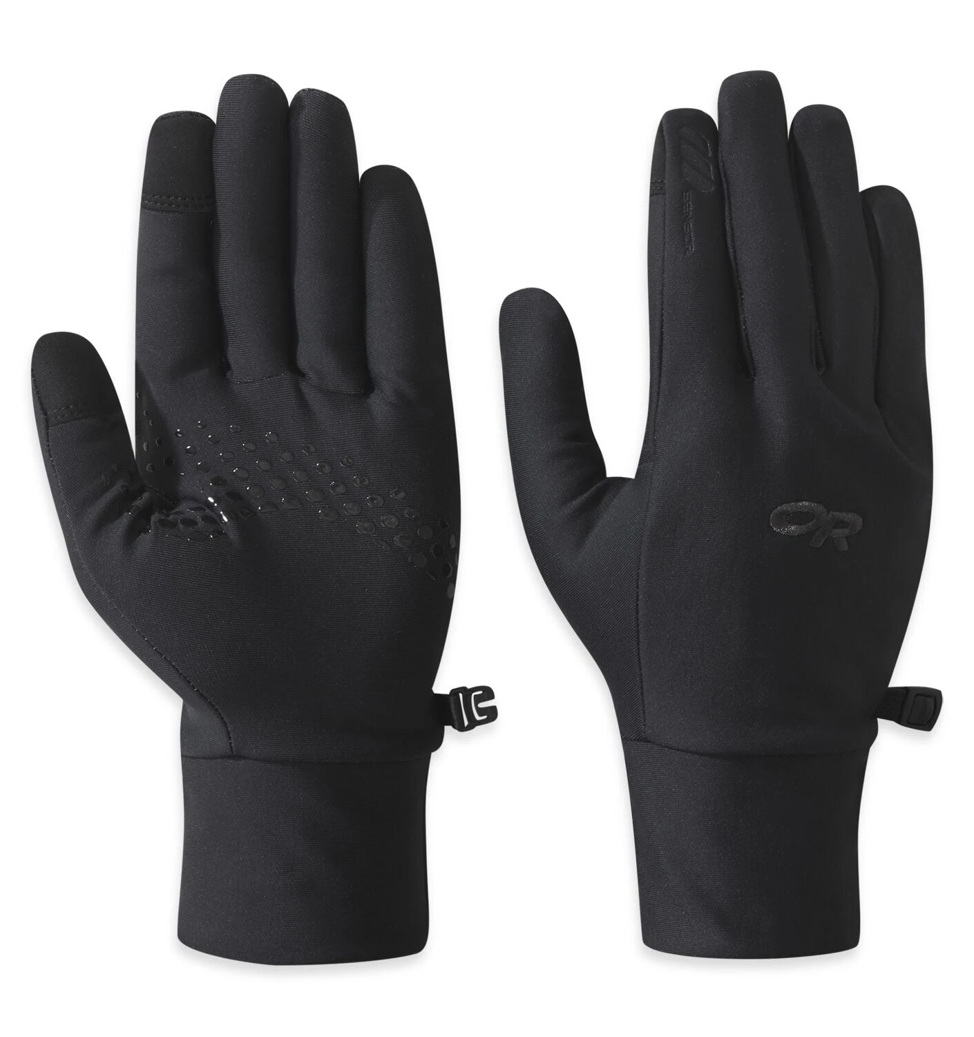 The thinnest and lightest weight form-fitting synthetic “liner” glove style from Outdoor Research. Made with ActiveTemp™ themo-regulating technology that adjusts to your level of exertion, sweat, and body temperature to actively control body heat and maintain an optimal comfort level. Includes an anti-slip silicone pad style palm grip as well as touchscreen compatible thumb and index fingertips. Use as a standalone lightweight glove or as a liner inside of mittens or appropriately sized warmer gloves.