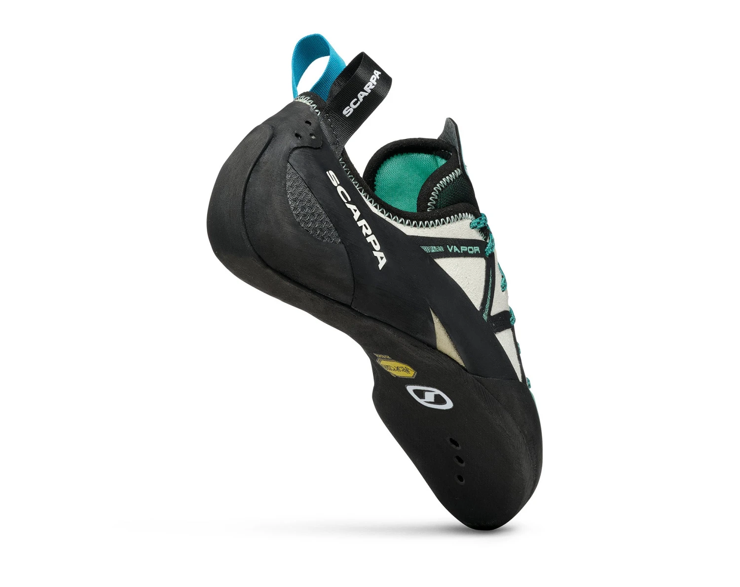 This new version of the Scarpa Vapor is their premier women’s all around high performance alpine and multi-pitch rock climbing shoe. A supportive 1.4 mm midsole and full length Vibram® XS Edge outsole combine for excellent vertical face and crack climbing. To-the-toe lacing maximizes comfort and provides the ideal customized performance fit. A new all leather upper uses TPU overlays to increase comfort and abrasion protection. The unique dual-density rubber toe patch combines two different rubber densities for stiffness and stickiness. 2mm Vibram® XS Grip2 rubber wraps the heel cup for extra friction, protection, and support. A discontinuous active heel rand helps to increase comfort around the achilles tendon on small edges in technical terrain while increasing dynamic forward pressure and focusing power over the big toe.